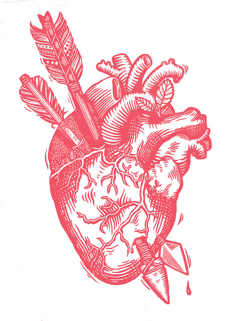 So I named my latest linocut Kärlek (love) for apparent reasons. I tried to work in some gruesomeness, some depth and some humor. Pretty happy with how the final prints look!